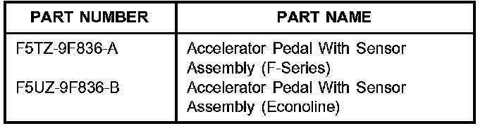 Remove and install a revised accelerator pedal assembly which includes IVS. Refer to the appropriate year 7.3L Turbo Diesel Service Manual Supplement, Pages 10-02-2 and 10-02-3, for service procedures.
