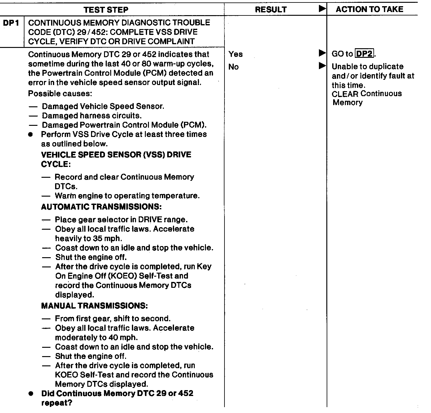 Test DP1 - Continuous Code 29/452: Complete VSS Drive Cycle