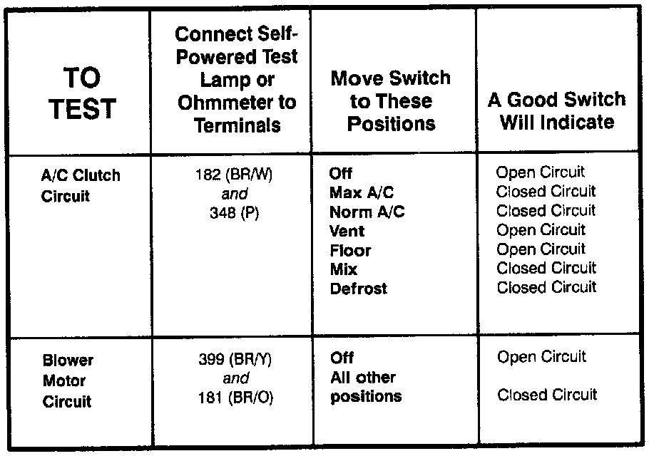 A/C Function Selector Switch - Component Testing Procedure: