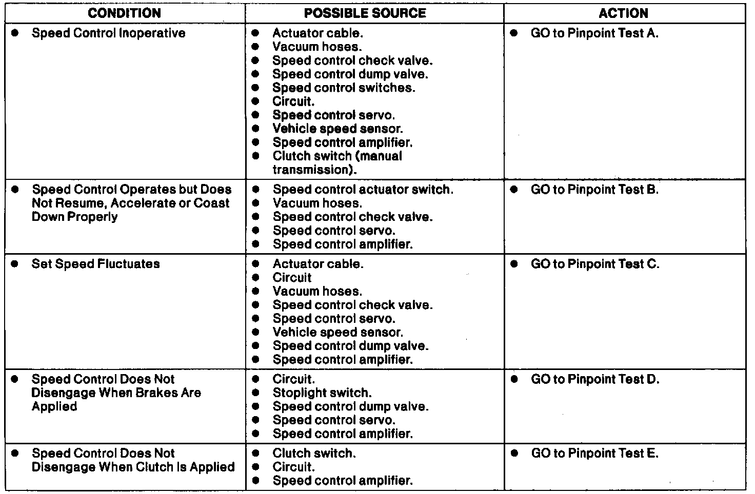 Speed Control Symptom Chart.:
