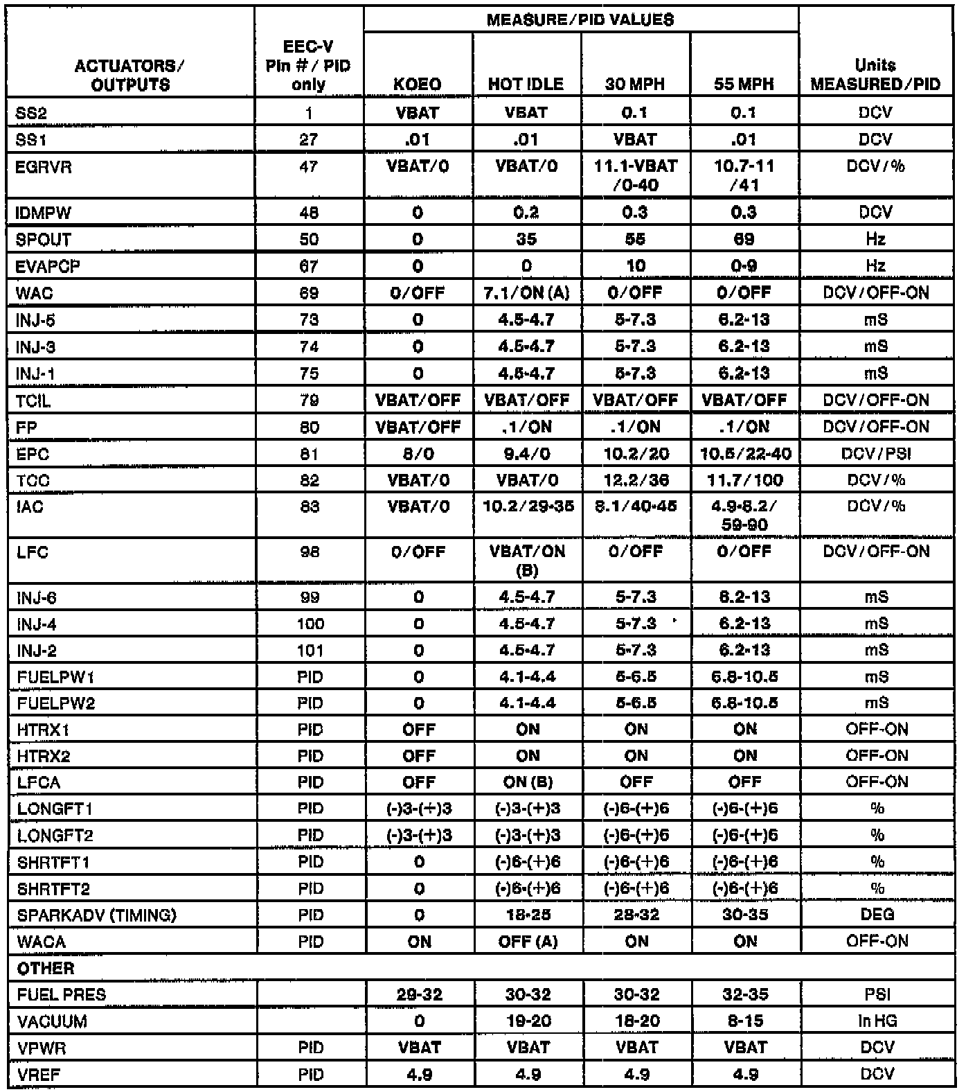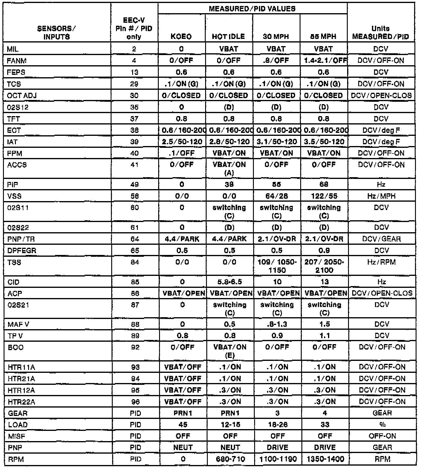 H Values shown are commanded by the PCM and may not be actual.