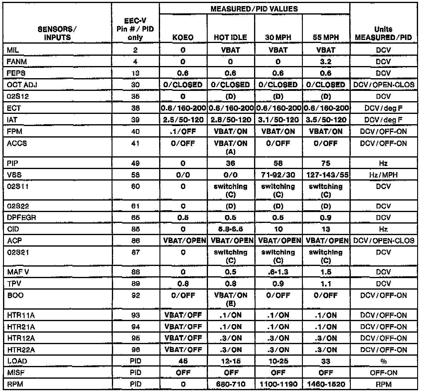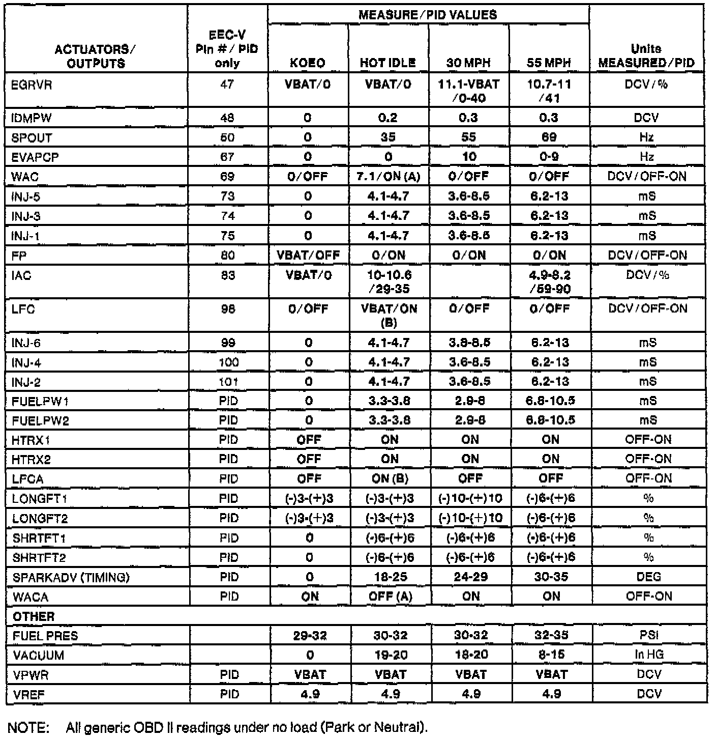 H Values shown are commanded by the PCM and may not be actual.