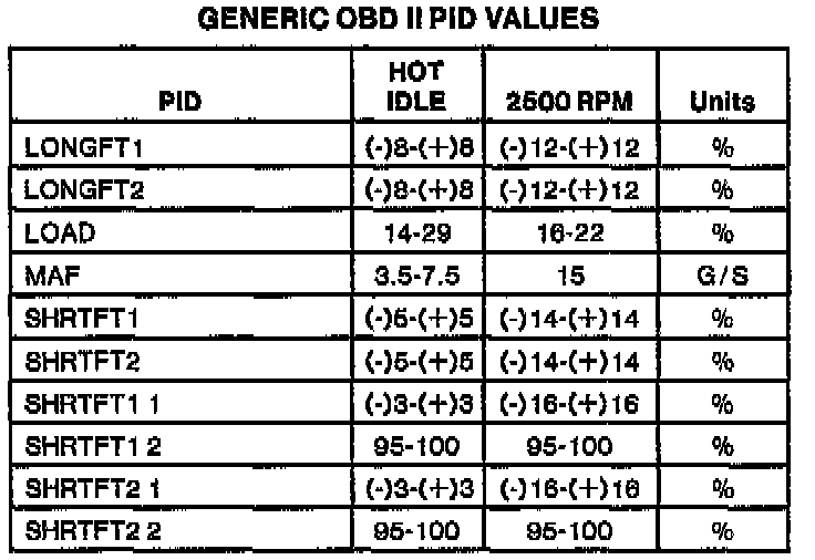 Generic OBDII Parameter Identification Values
