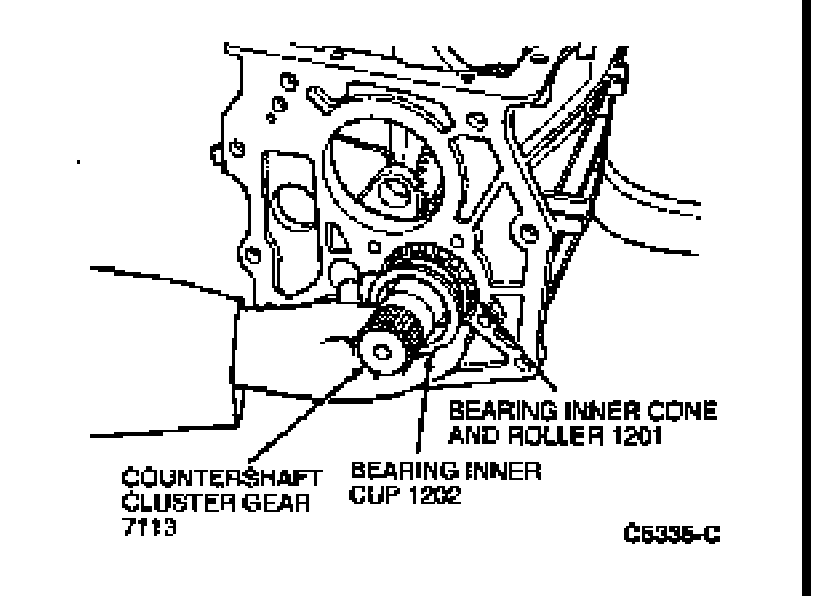 4. Install rear countershaft bearing cup (1202) onto countershaft cluster gear.