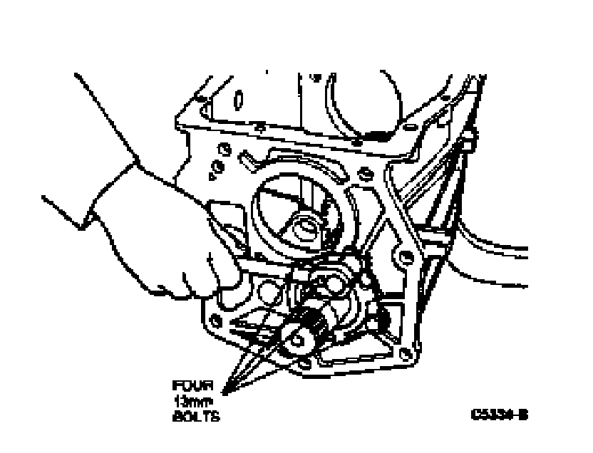 Install countershaft rear bearing retainer (7195) to transmission case with four 13mm bolts.