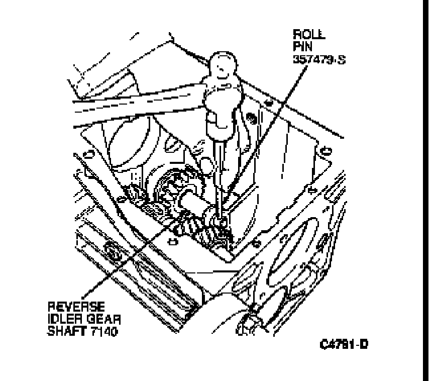 8. Using a 5mm (3/16-inch) pin punch, install reverse idler gear shaft roll pin.