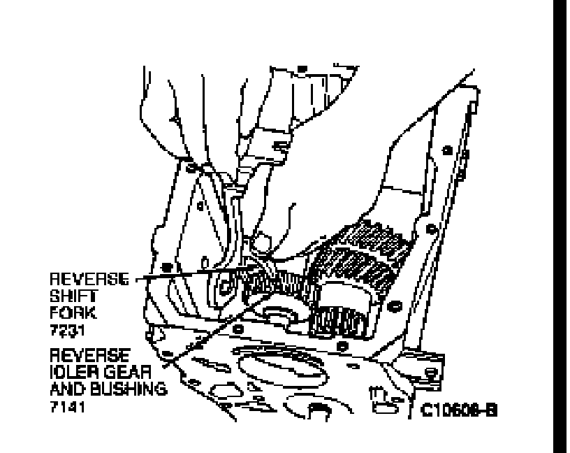 7. Position reverse idler gear and bushing (7141) in case with shift lever groove facing rear of case.