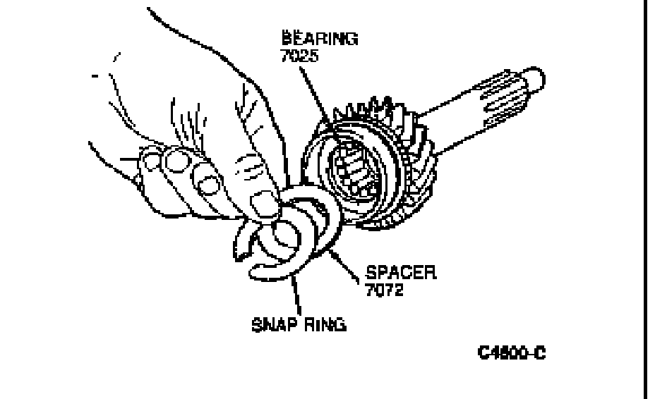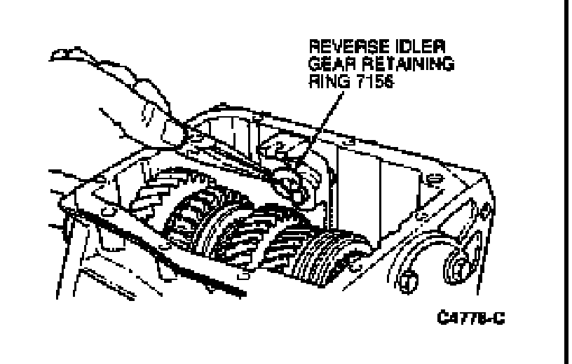 25. Using needlenose pliers, install reverse idler gear retaining ring (7156) on shift rail rear pin.