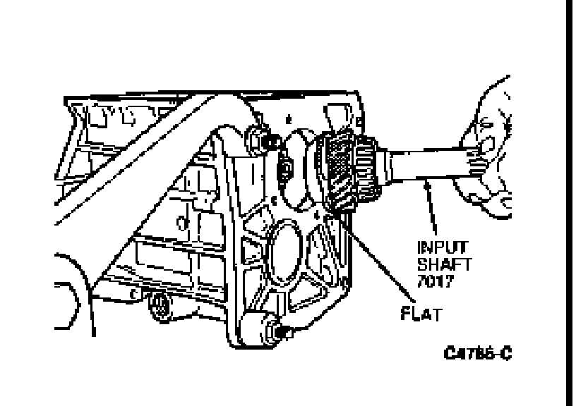 Install input shaft. Align flat on synchronizer teeth with countershaft cluster gear before installing input shaft.