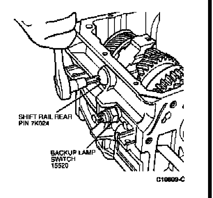 Tighten shift rail rear pin to 34-47 Nm (25-35 lb-ft) using a T55 Torx� driver. Apply Pipe Sealant with Teflon� D8AZ-19554-A or equivalent meeting Ford specification WSK-M2G350-AZ to the backup lamp switch (15520) and install using a 22mm socket. Tighten to 27-47 Nm (20-35 lb-ft).
