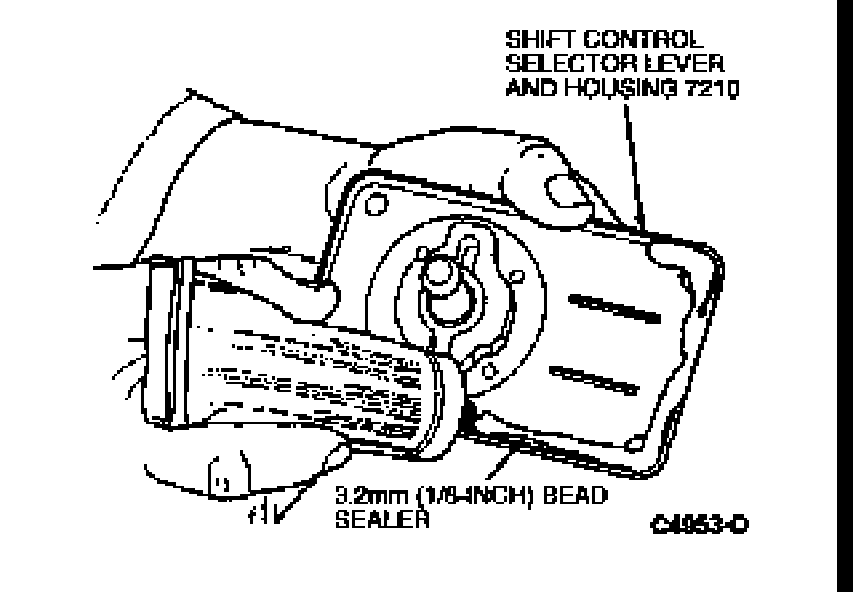 38. Apply a 3.2mm (1/8 inch) bead of Silicone Rubber D6AZ-19562-AA or BA or equivalent meeting Ford specification ESB-M4G92-A and ESE-M4G195-A on the shift housing cover.