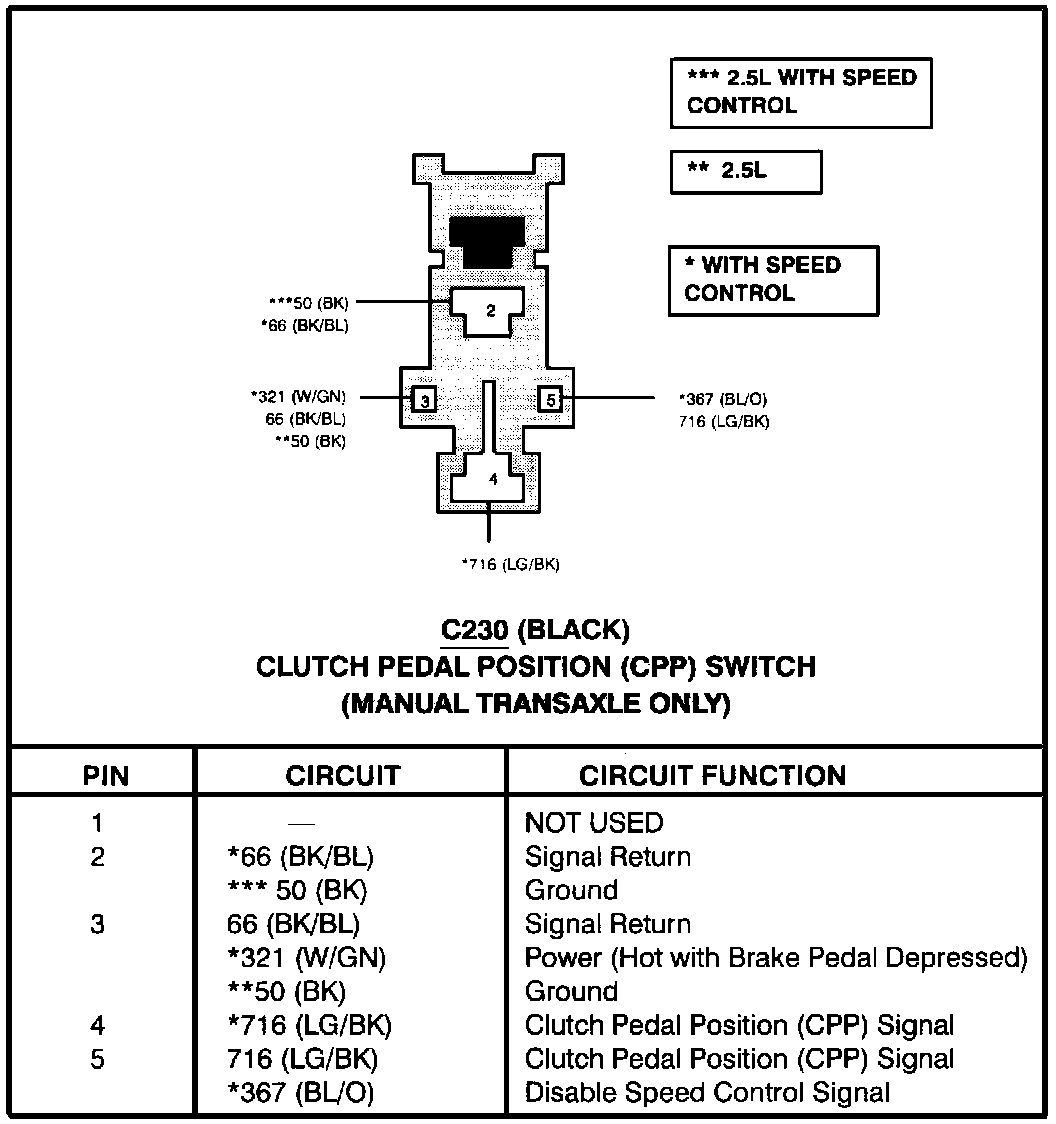 Clutch Pedal Position Switch (Manual Transaxle Only):