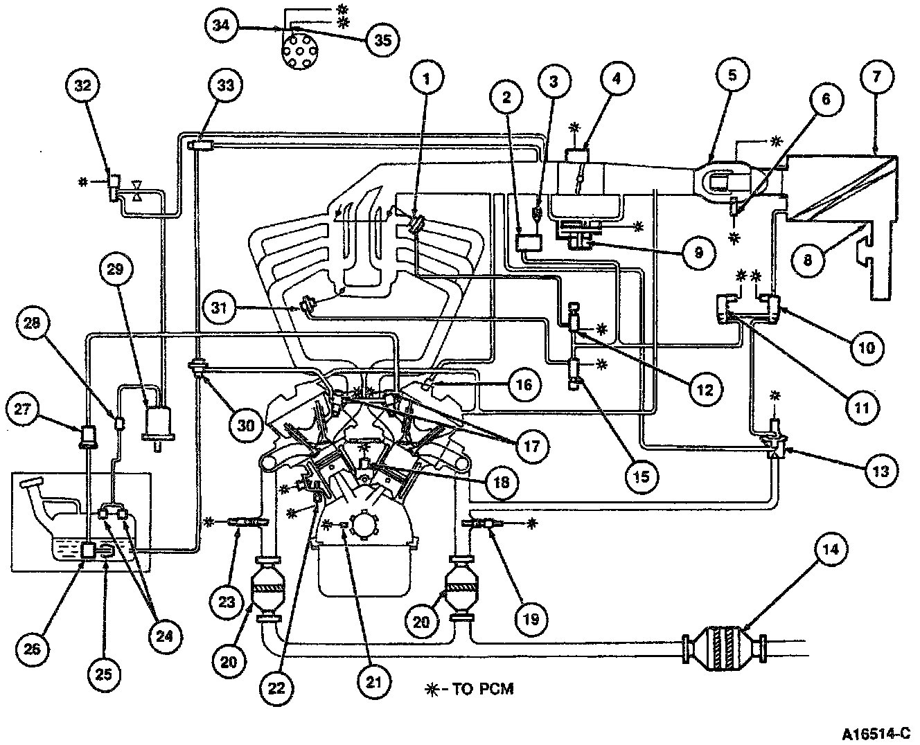 This was one of the first emission control systems. Rather than being vented to atmosphere, crankcase fumes are routed back through the intake system and reburned. Basic systems consist of necessary hoses and a Positive Crankcase Ventilation (PCV) valve to regulate fume flow through the system.
