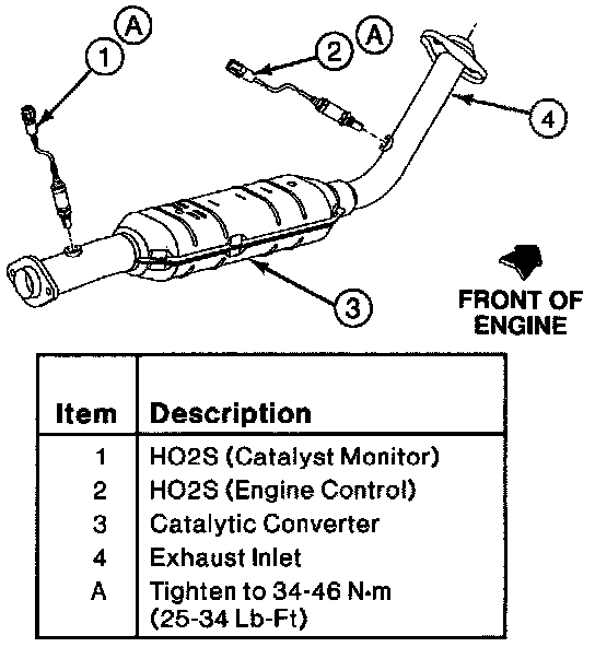 2. Tighten heated HO2S's to 34-46 Nm (26-34 ft lb).