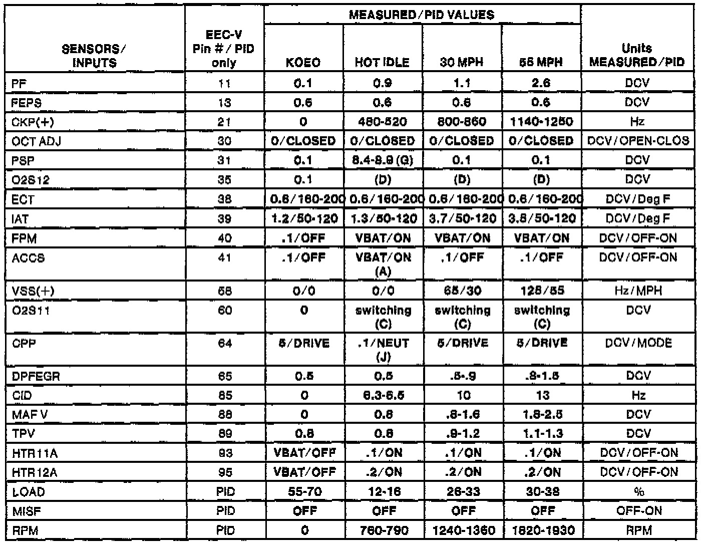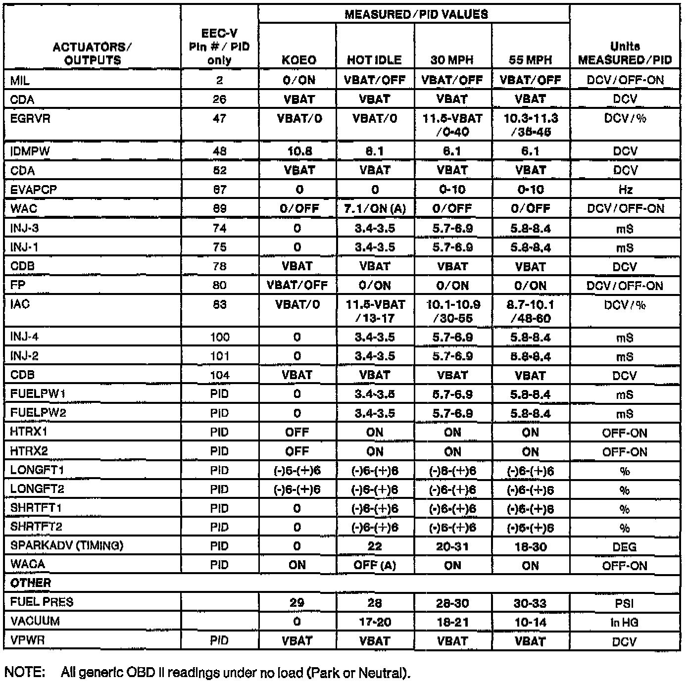 H Values shown are commanded by the PCM and may not be actual.