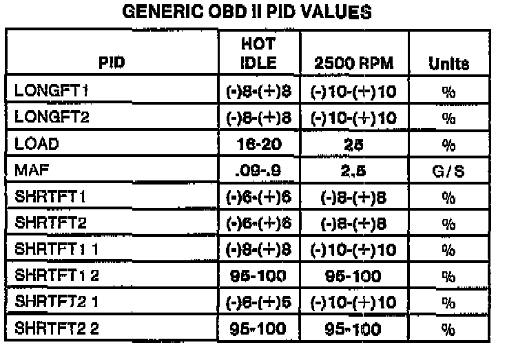 Generic OBDII Parameter Identification Values