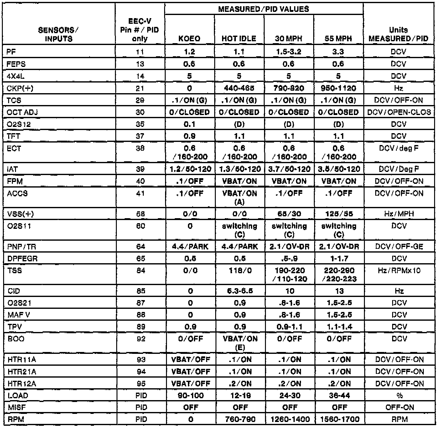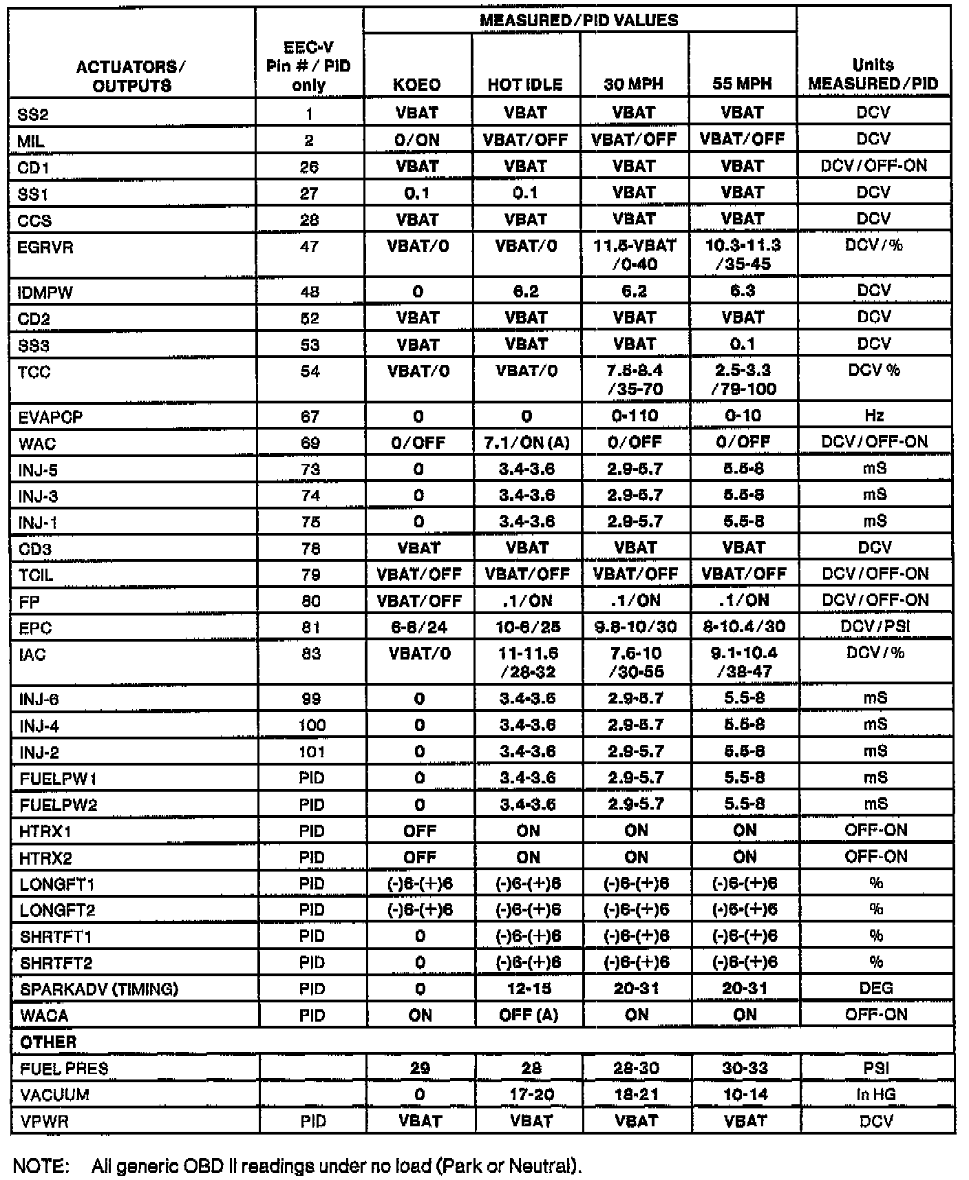 H Values shown are commanded by the PCM and may not be actual.