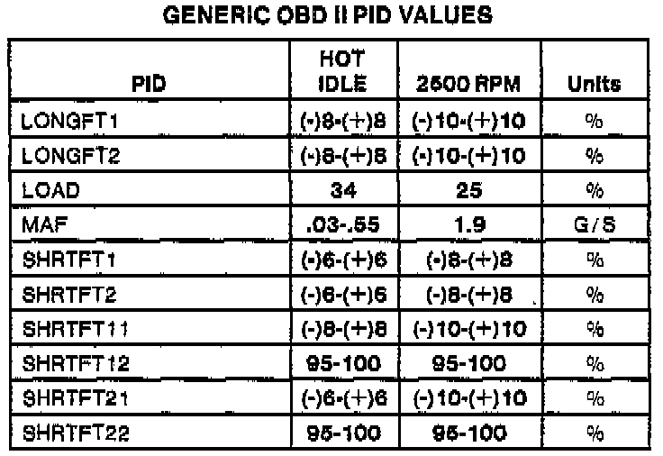Generic OBDII Parameter Identification Values