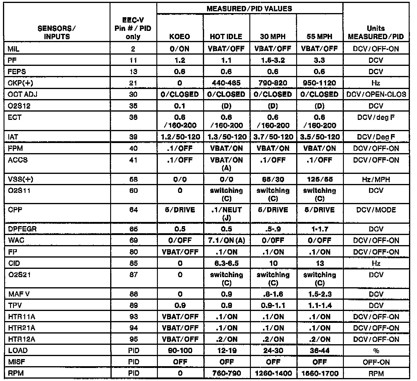 H Values shown are commanded by the PCM and may not be actual.