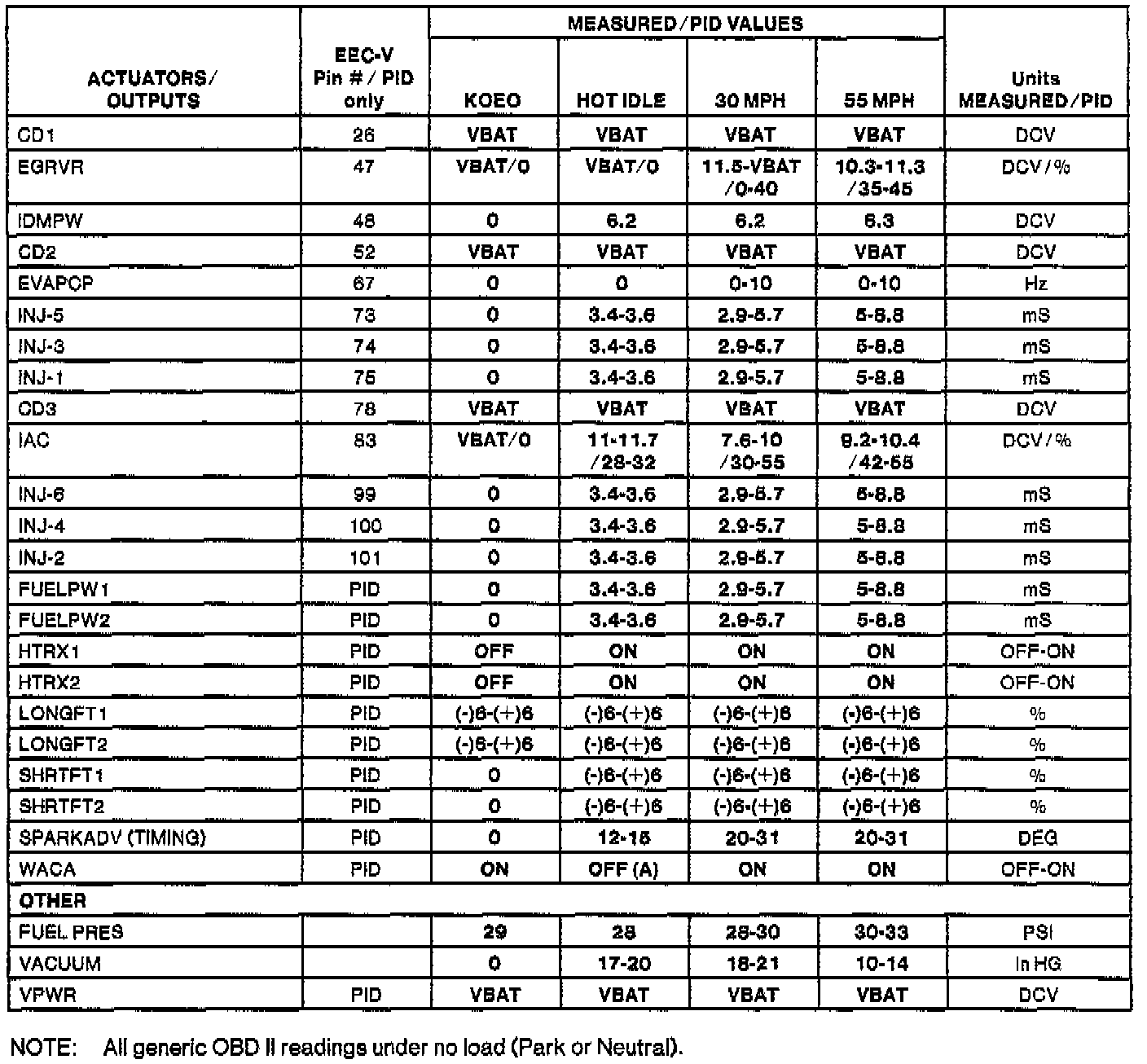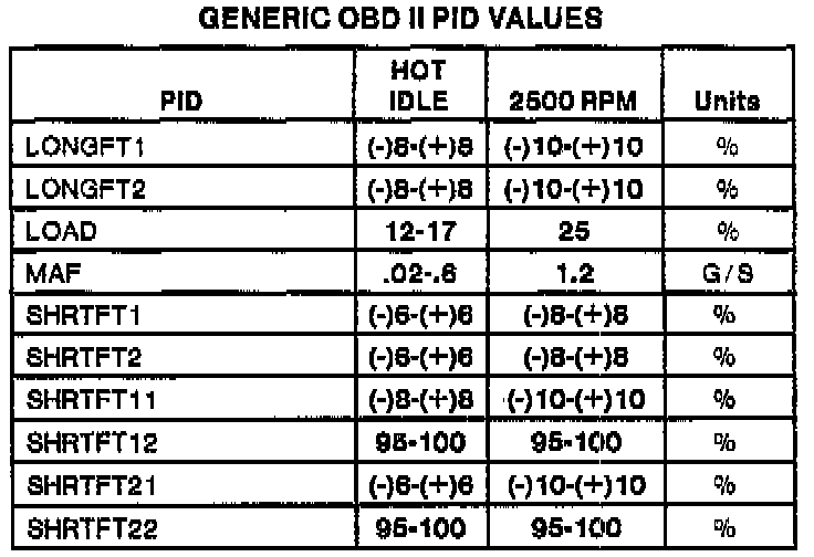Generic OBDII Parameter Identification Values