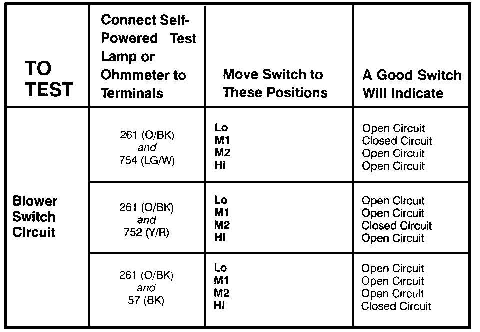 Blower Motor Switch - Component Testing Procedure: