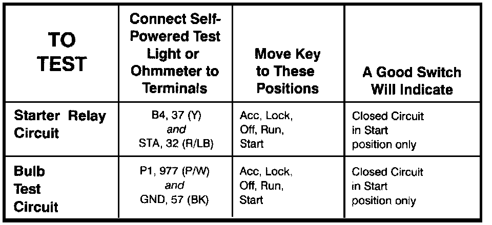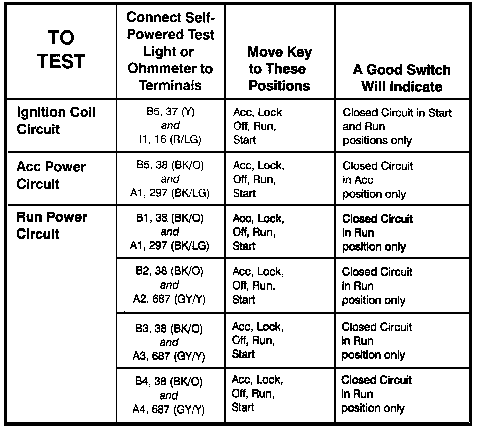 Ignition Switch - Component Testing Procedure (Part 2 Of 2):