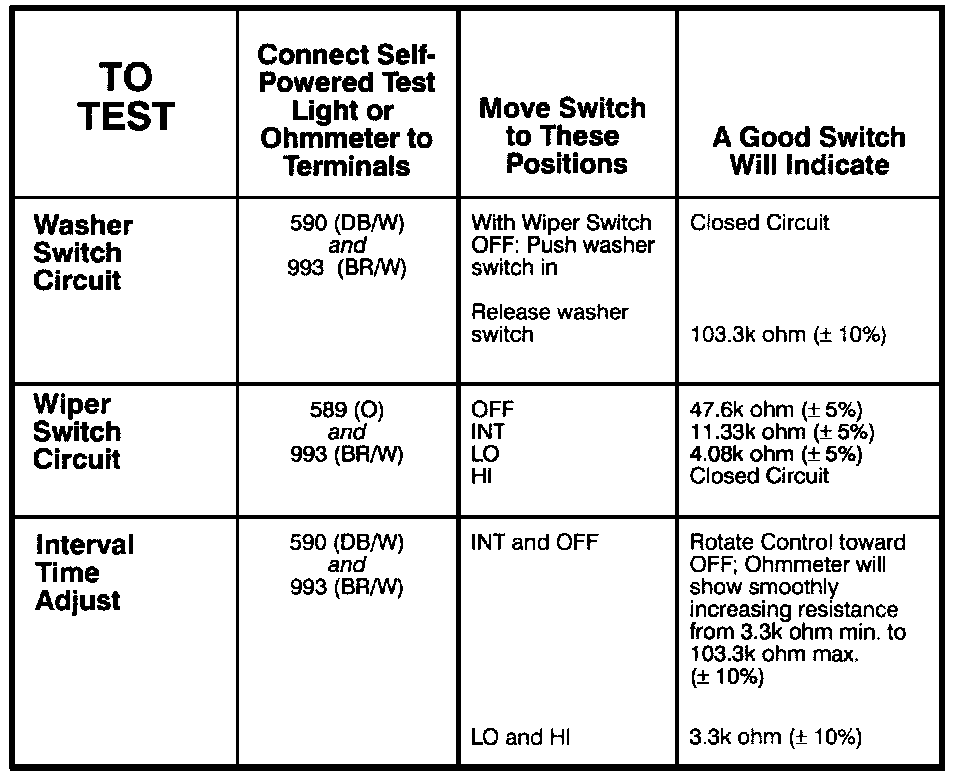 Multi-Function Switch - Schematic - Wiper/Washer Portion Of Multi-Function Switch: