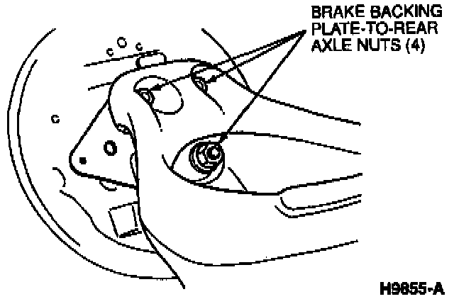 6. Remove and discard four brake backing plate-to-rear axle nuts.