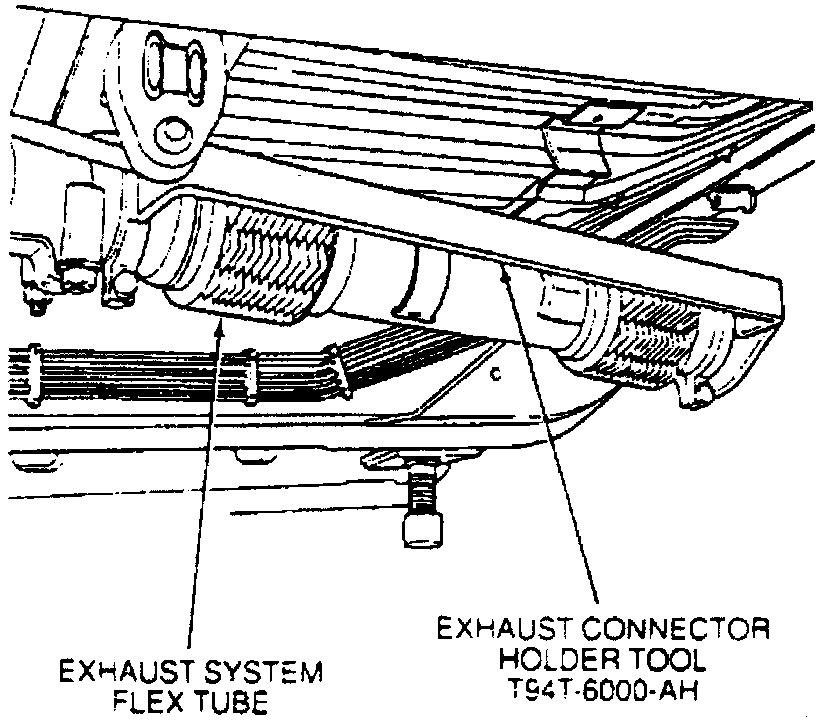 21. Remove converter Y pipe retainer bolts, then install exhaust connector holder tool No. T94T-6000-AH or equivalent and remove converter Y pipe Fig. 2