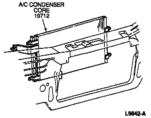 - Position A / C condenser core assembly to radiator support brackets. Install retaining bolts.