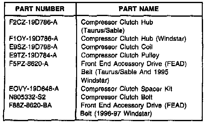 Install a larger diameter A/C compressor clutch and pulley. The larger diameter eliminates the resonant frequency from the idle rpm range and should reduce the possibility of a moan. Refer to the procedure outlined in the appropriate model/year Service Manual, Section 12.