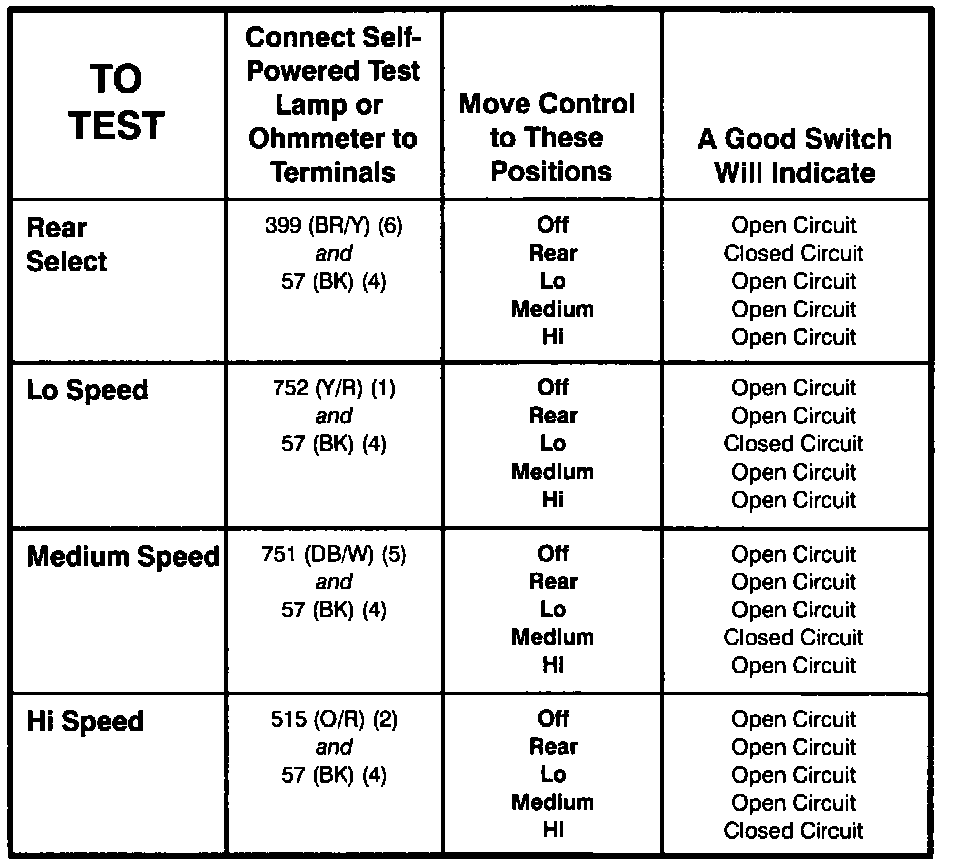 Front Auxiliary Blower Motor Switch - Component Testing Procedure: