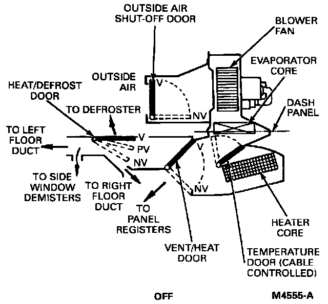 In the OFF position, all doors are in the vacuum-applied position with the exception of the PANEL/DEFROST door.
