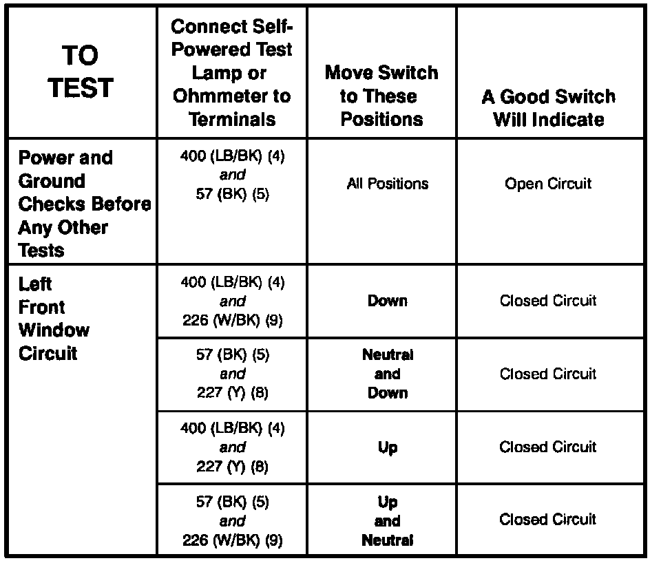 Power Window Switch: Testing and Inspection