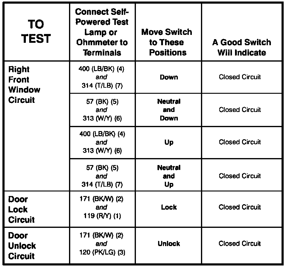 Master Window/Door Lock Switch - Component Testing Procedure (Part 2 Of 2):