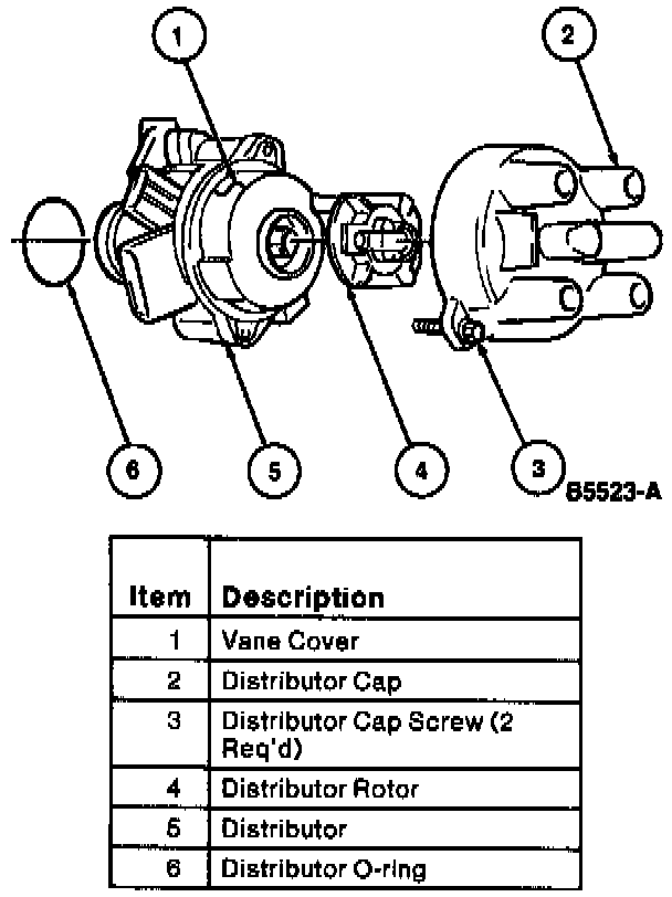 The distributor is serviced as an assembly. There is no disassembly or assembly procedure for this component. The distributor cap, distributor rotor, and distributor 0-ring are the only serviceable parts on this assembly.