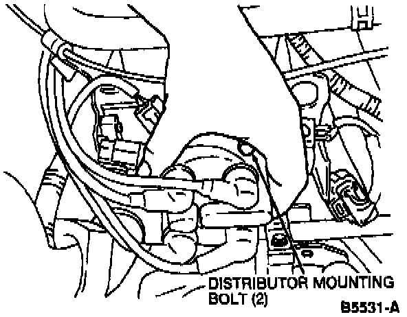 9. Tighten the distributor bolts to 19-25 Nm (14-19 lb ft).