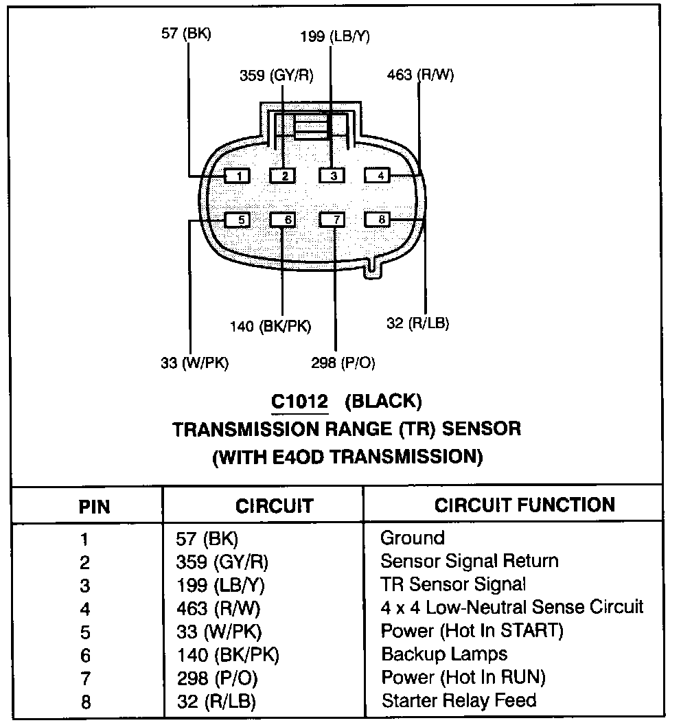 Transmission Range Sensor (With E4OD Transmission):