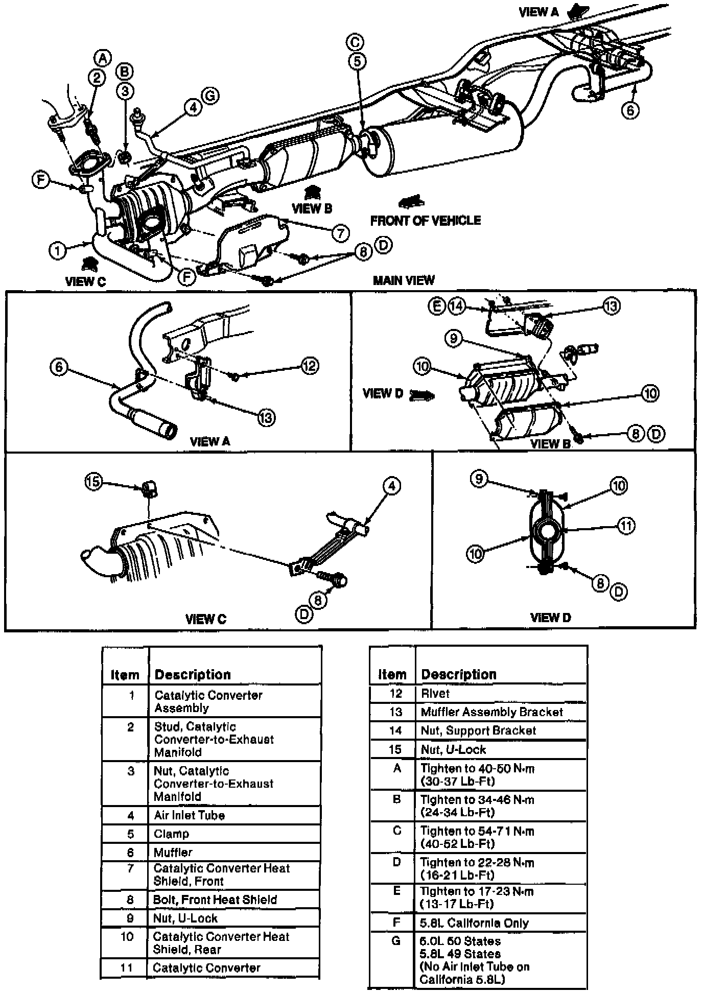 6. To install, reverse removal procedure. Tighten the exhaust manifold-to-catalytic converter nuts to 34-46 N.m (25-34 lb ft).