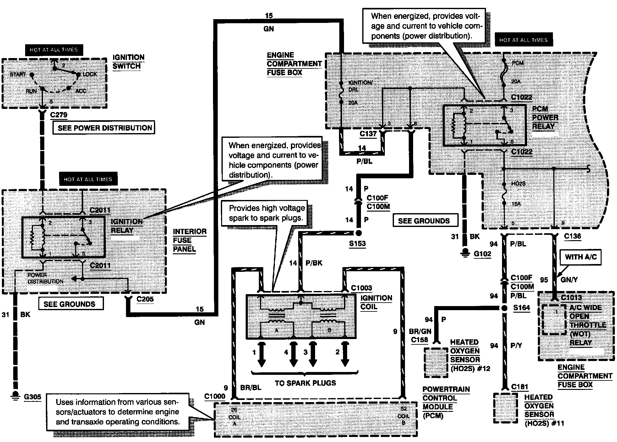 PCM pin 26 coil A and pin 52 coil B provides the high voltage spark to the spark plugs.