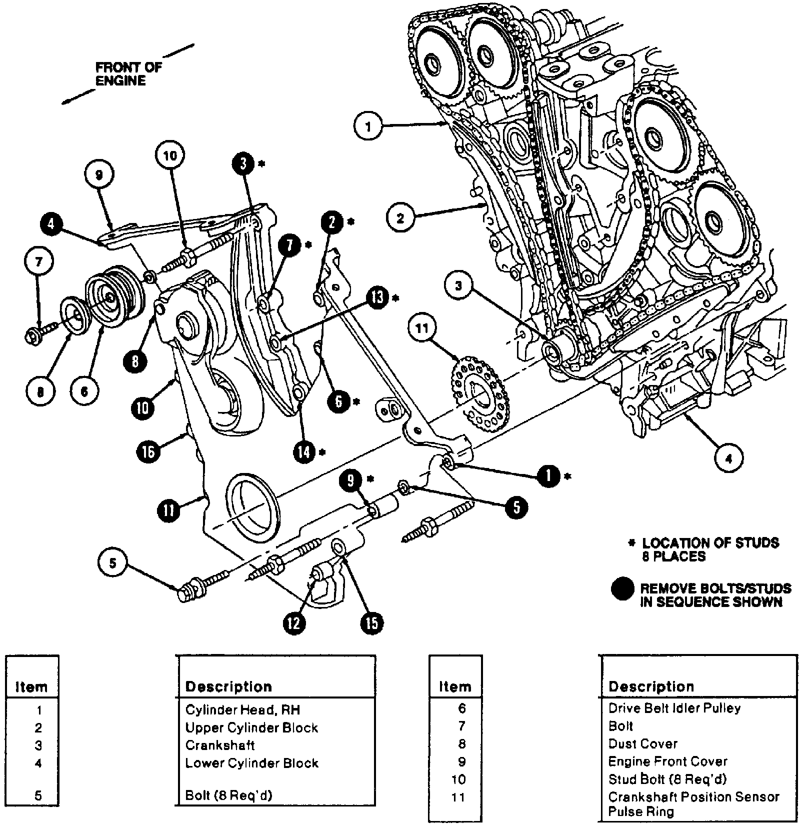 Fig. 22 Front cover bolt & stud bolt installation sequence: