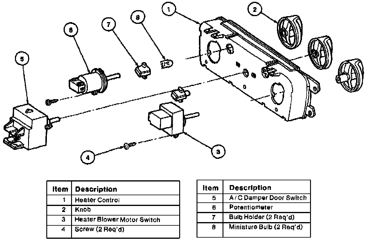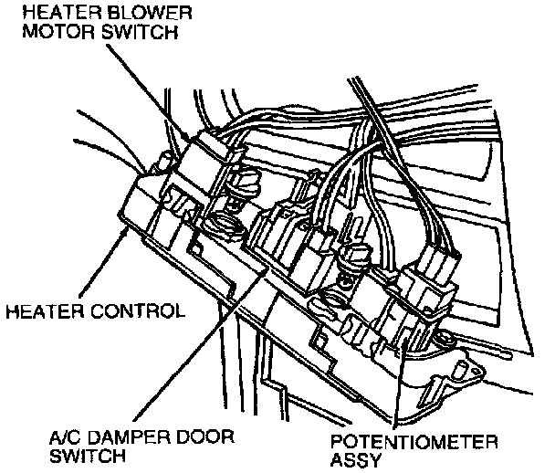 7. Remove two screws and heater control from the instrument panel.