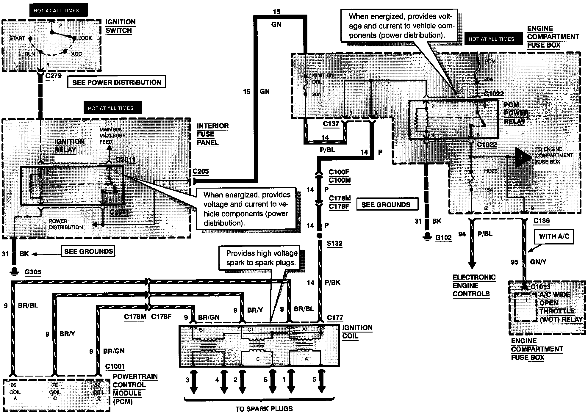 PCM pin 26 coil A and pin 52 coil B and pin 78 pin C provides the high voltage spark to the spark plugs.