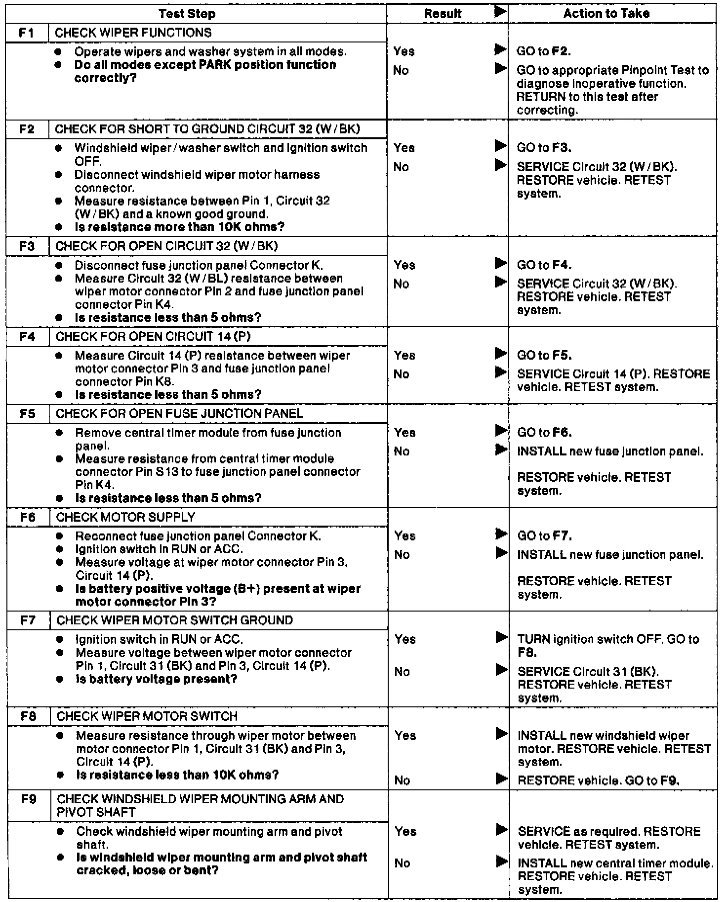 Test F: Wipers Will Not Park At Proper Position.: