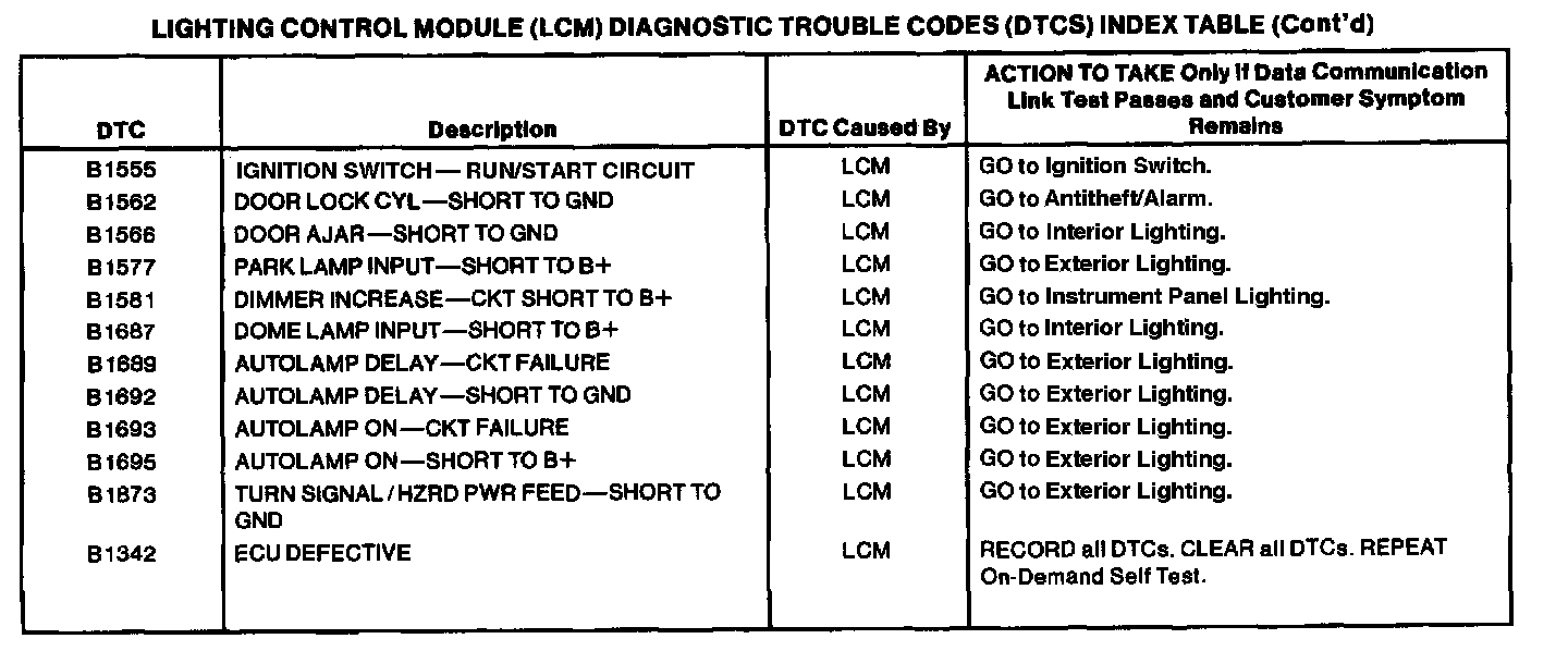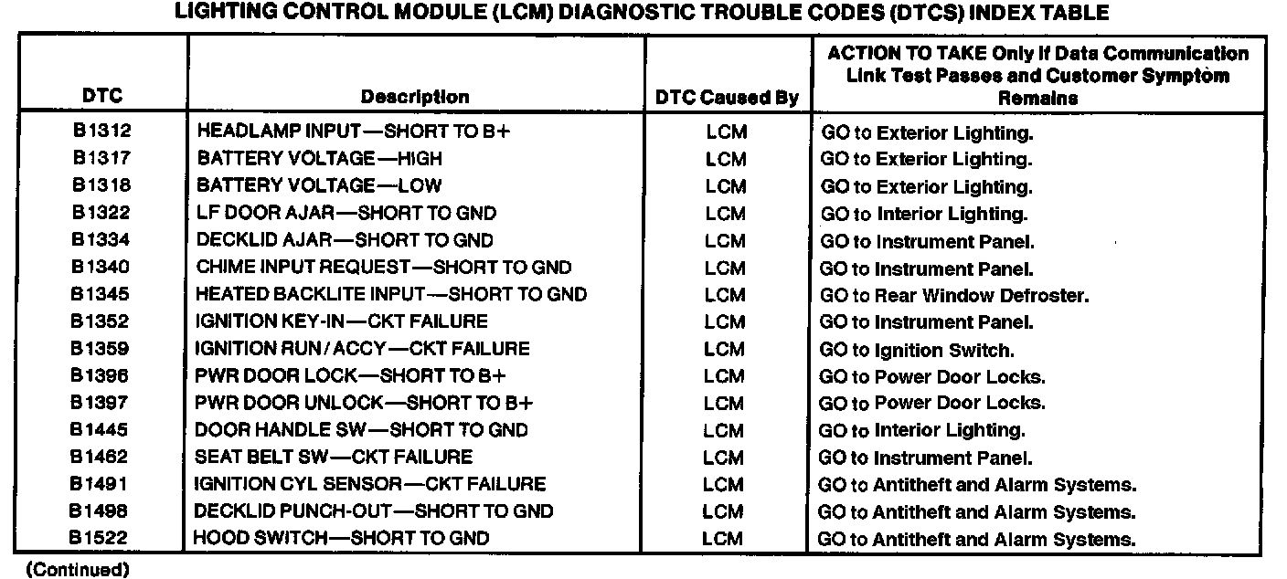 Lighting Control Module DTC Chart Part 2 of 2: