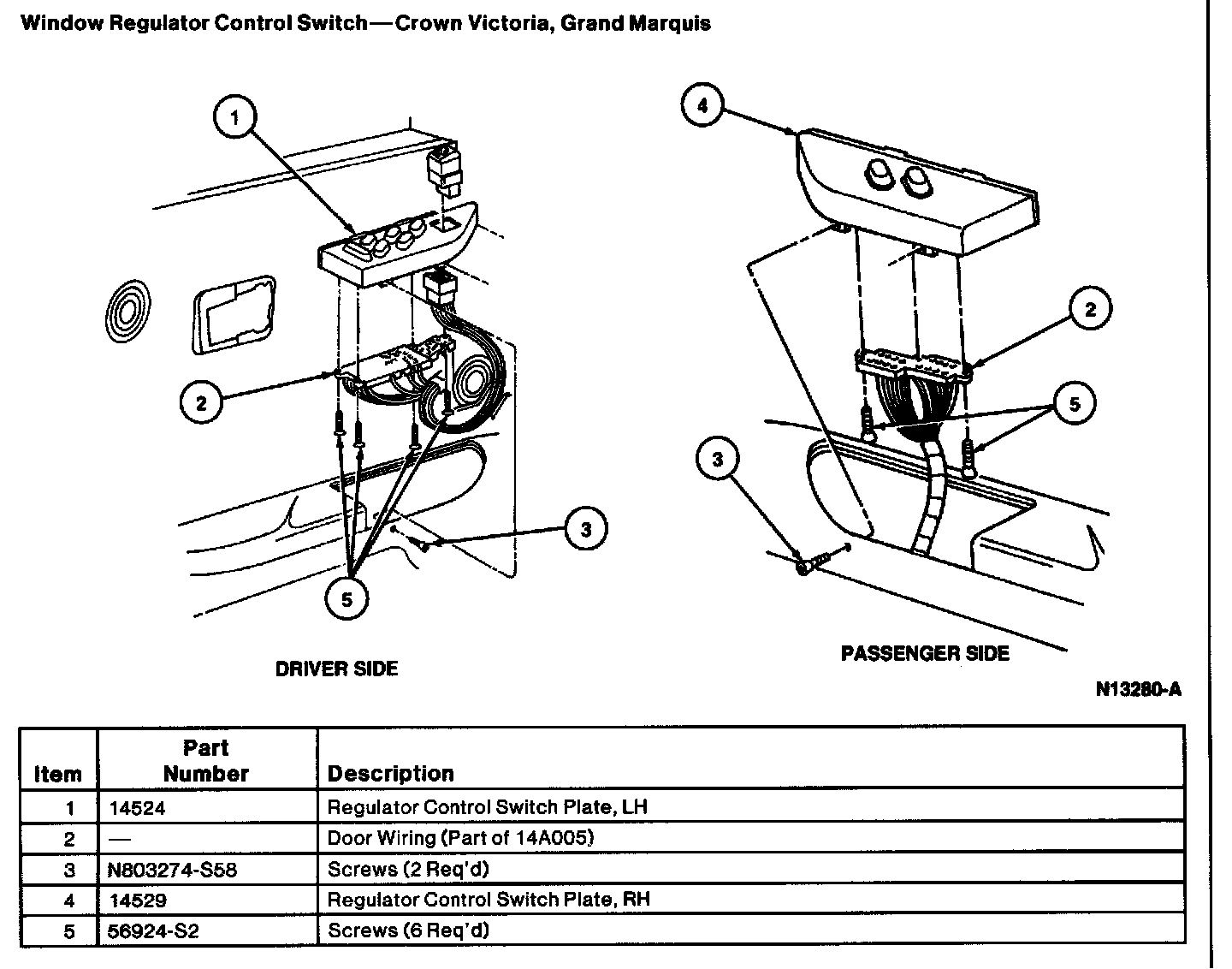2. Remove screw and pry up gently on the window regulator switch housing starting at the front.