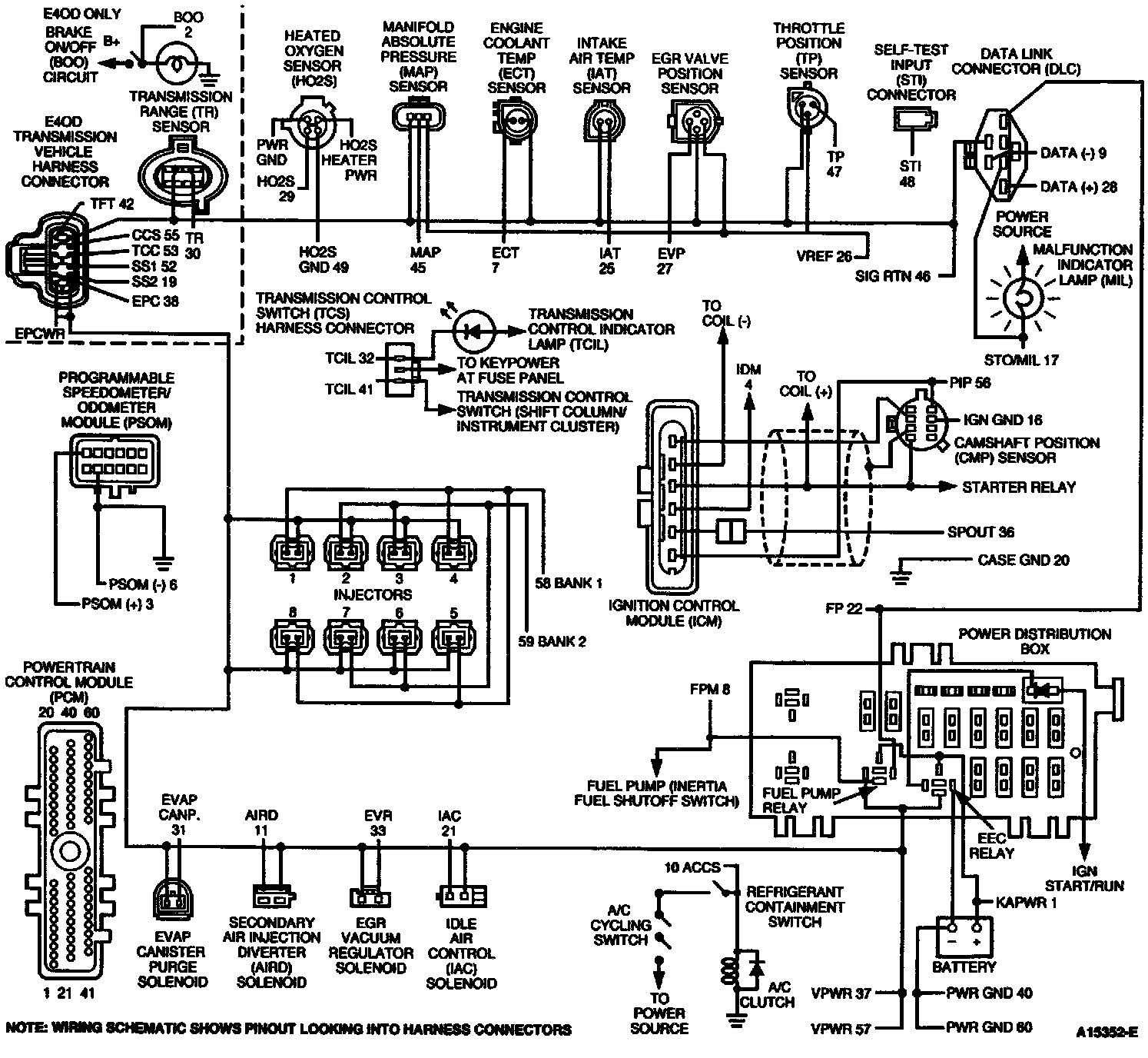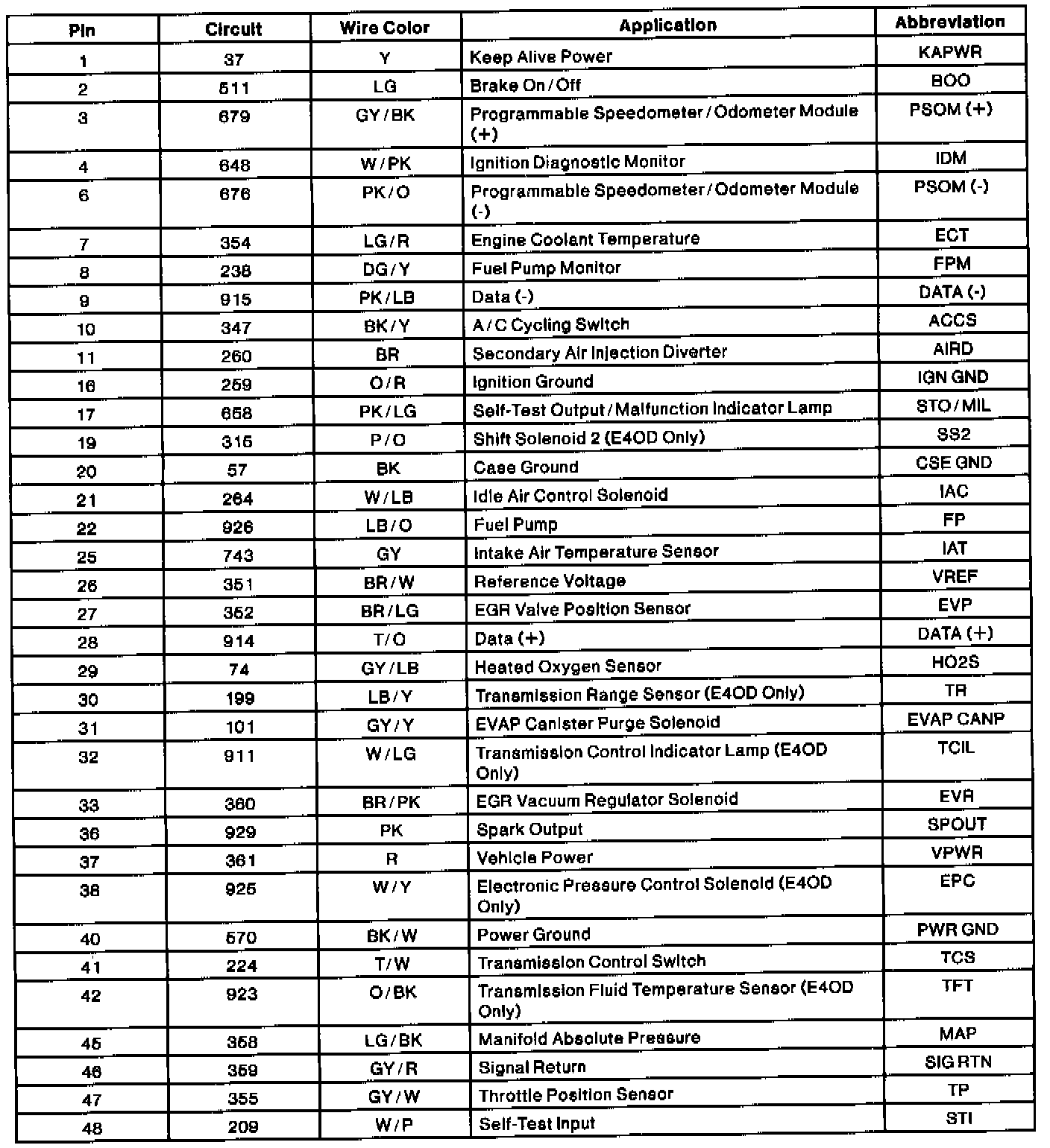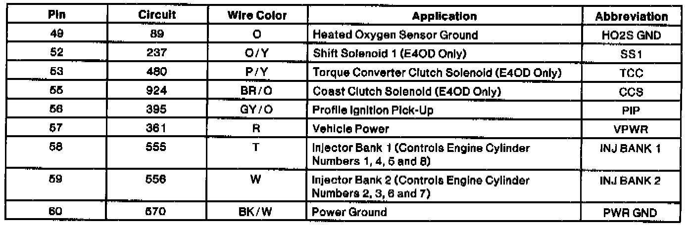 Powertrain Control Module (PCM) Connector Pin Usage: