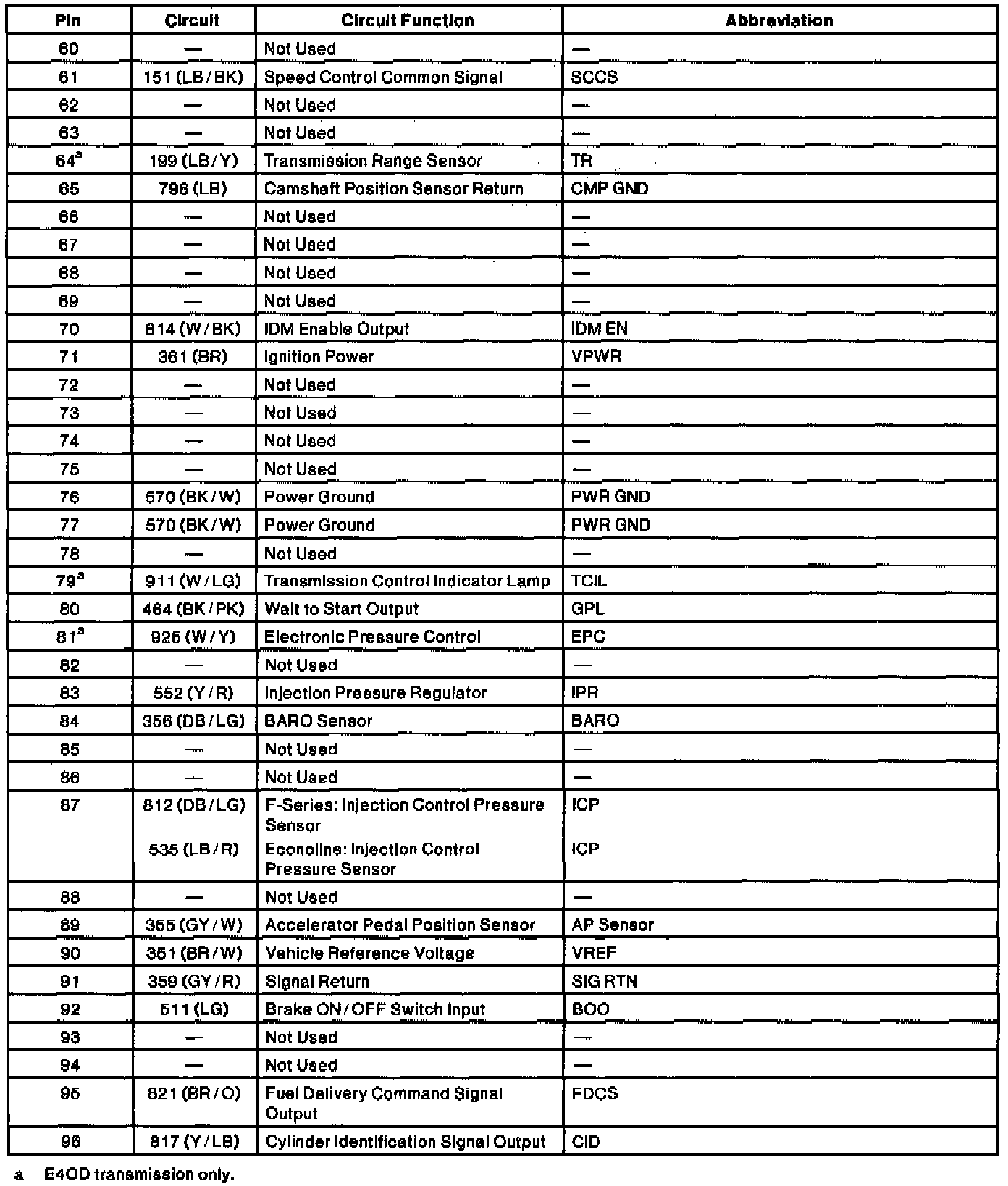 PCM Pinout Chart (Part 1 Of 4):