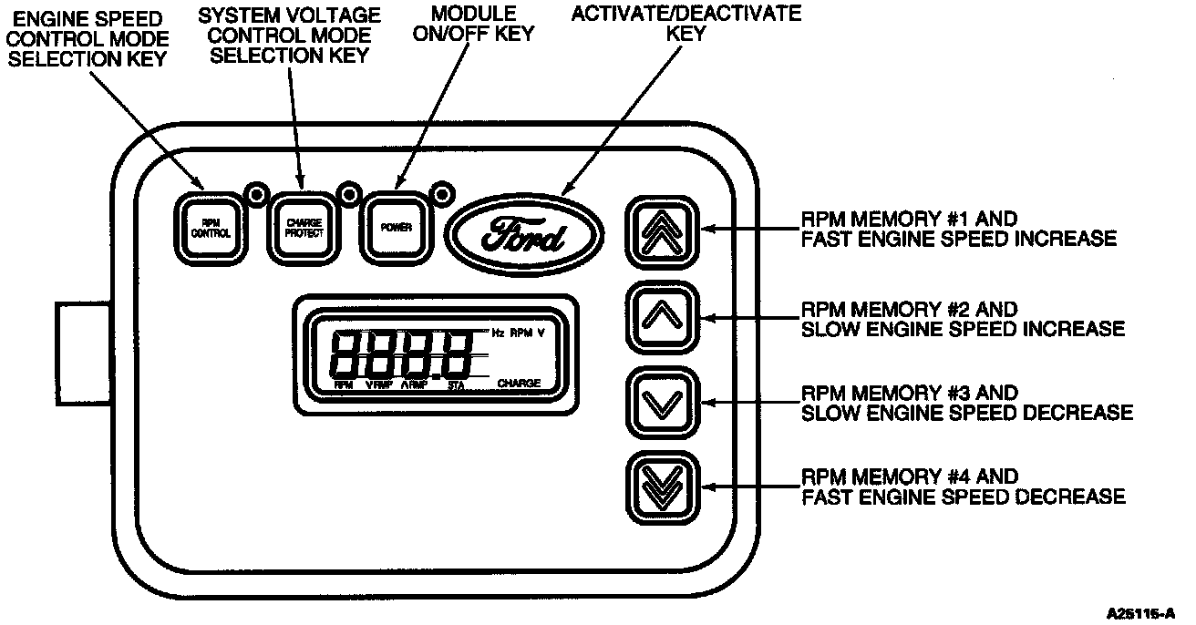 The auxiliary powertrain control system provides an operator interface to the drive-by-wire powertrain control system to effect "Charge Protection," "RPM Control," and manual throttle control between 1300 and 2500 rpm.