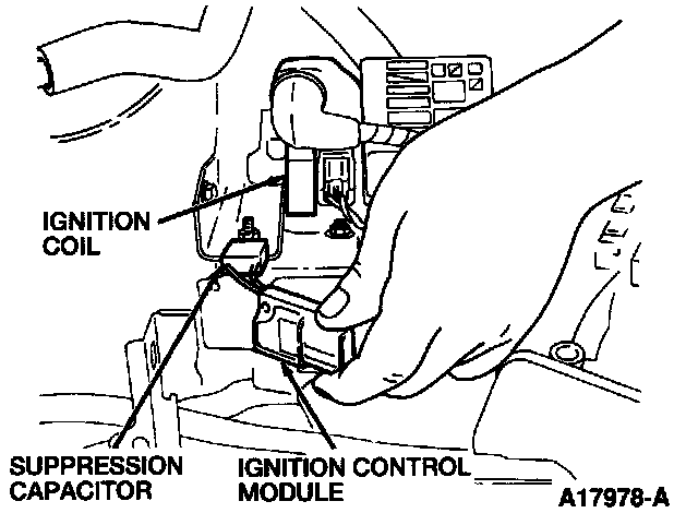 The Distributor Ignition Module is located at the LH side of the engine compartment, above wheel well.